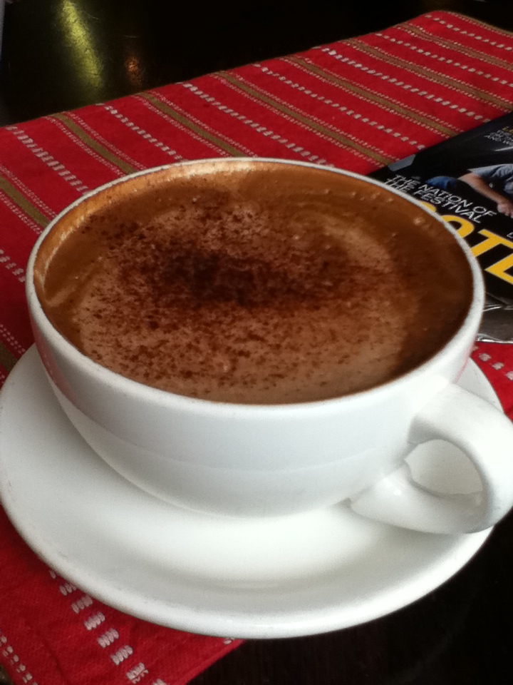 The soya mocchacino was good; slightly on the hotter side and the foam on top was quite thick, but it was certainly of nicer texture than the coffee at Word of Mouth. It had pleasant sweetness to it to the last drop and the layers of coffee and foam worked well together. Some thick chocolate residue on the bottom suggested use of good quality cocoa – or some effort on the part of the barista to dissolve it. A nice surprise was that there was no surcharge for soy milk – and the coffee was surprisingly cheap.