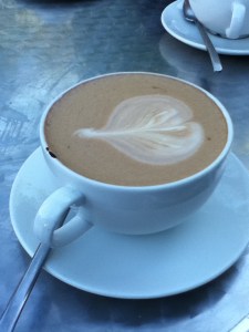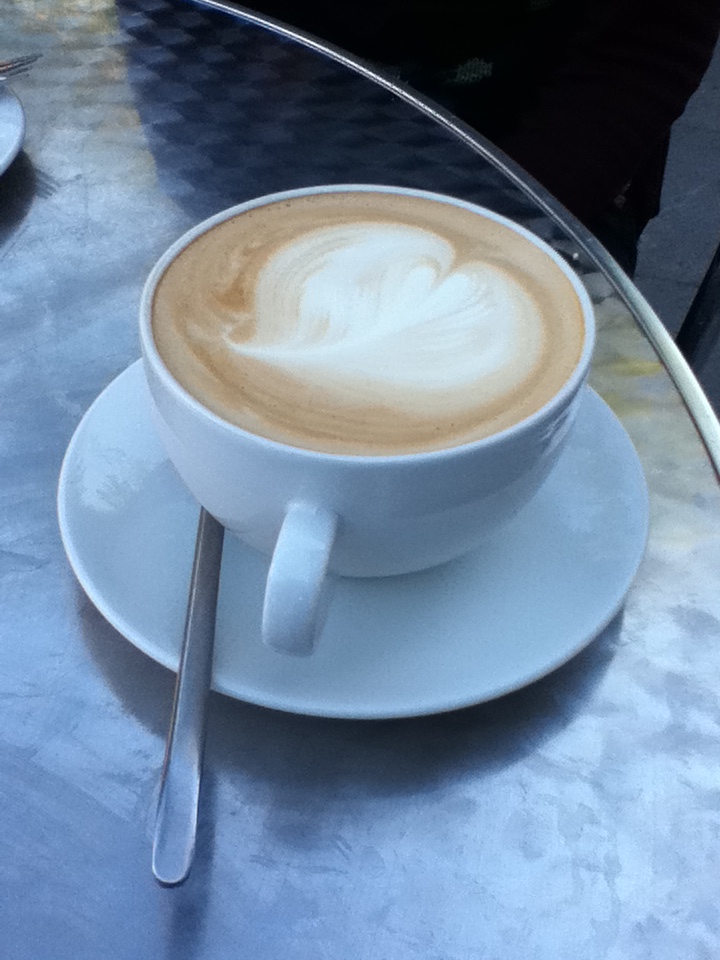The coffee that we received looked nice and promising – apart from the speck of old espresso on the side of the cup (these marks are sometimes left by the espresso pouring nozzles when they are lowered as much as to touch the rim of the cup underneath). I took a sip, and my high hopes hit the ground. First of all, the coffee was warm – quite the opposite to what I used to be served, boiling lavas burning my tongue, this one was off the correct temperature – not much, but significantly enough for me to notice, especially with the accompaniment of the afternoon breeze. Then there was the thick layer of foam, split from the milky beverage mid-way through. It wasn’t very punchy or chocolatey. I drunk it, but with no pleasure. And then I got a stomach ache (although I’d hate to think it was from the coffee).