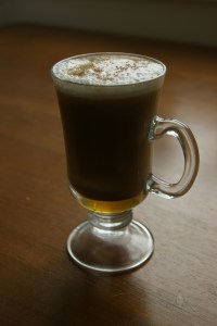 This one is super easy to make but it tastes great, if you like sweet coffees. I started with pouring honey in a glass. I also heated some milk in a microwave and then steamed it with my espresso machine to make some foam on top – you can achieve this also with a milk frother (back in the days, you could get them with instant cocoa boxes); then slowly poured the milk on top of the honey, leaving some of the froth on the bottom of the steaming jug for later.