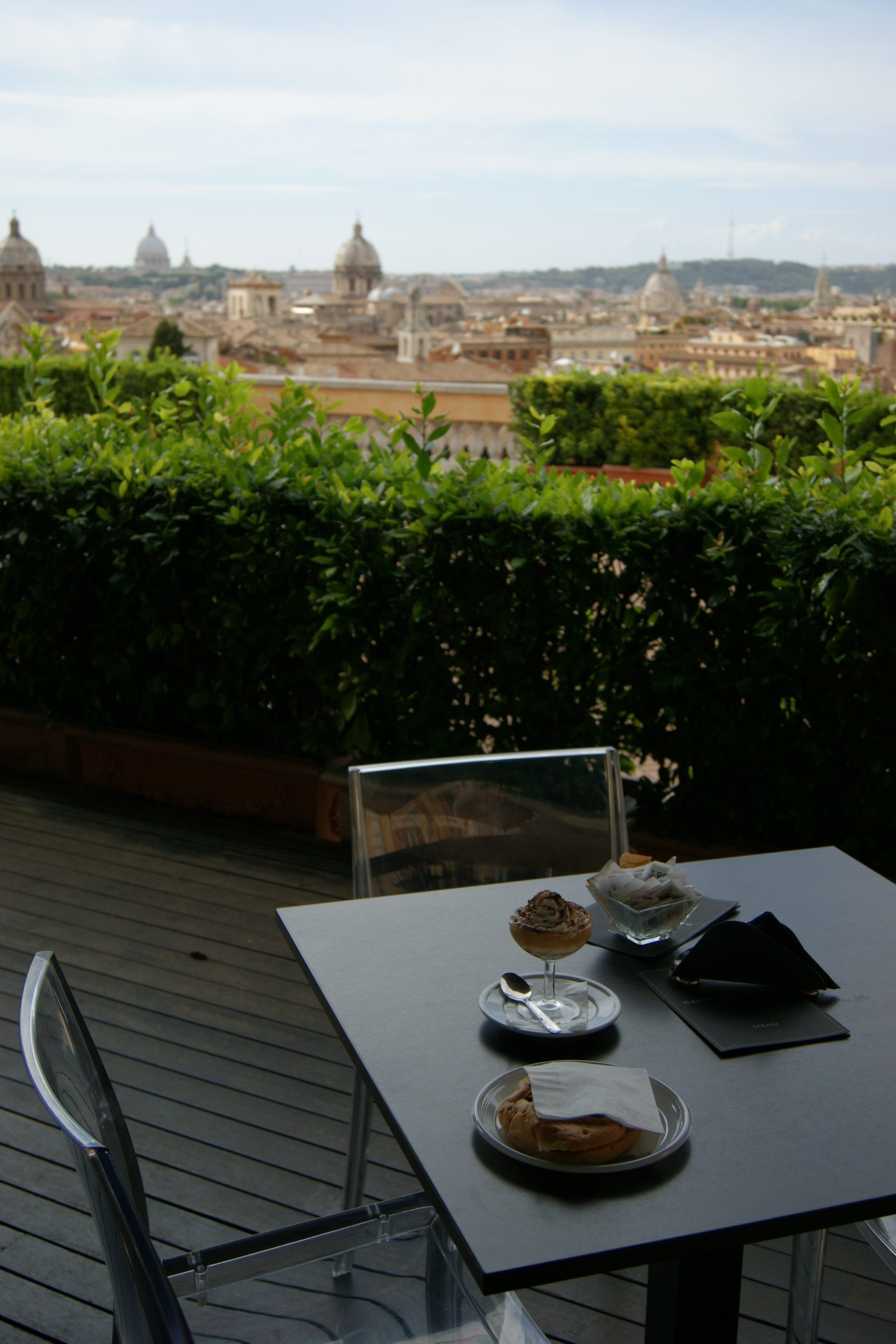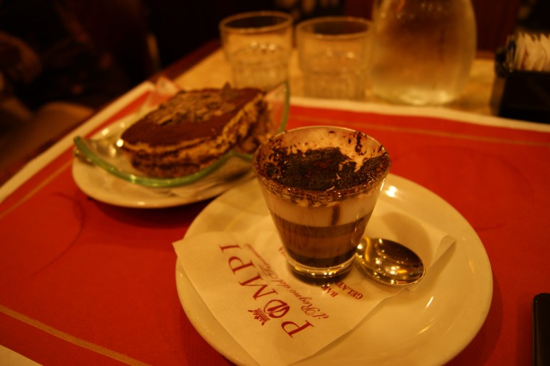 Both drinks were served in espresso-sized cups, with that difference, that mine had chocolate in it – and that was pretty much the story everywhere in Rome. The price lists started with the option Caffe at 80 cents up to 1 euro on average, signifying your average espresso. As for, what we learnt to call in the UK, speciality coffee, they were there also: cappucino or caffe latte or even iced chocolate cream. As I was later explained, cappucino – not bigger than double the size of an espresso cup – was an Italian breakfast brew, and was today served after midday only to satisfy the touristic demand.