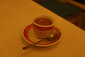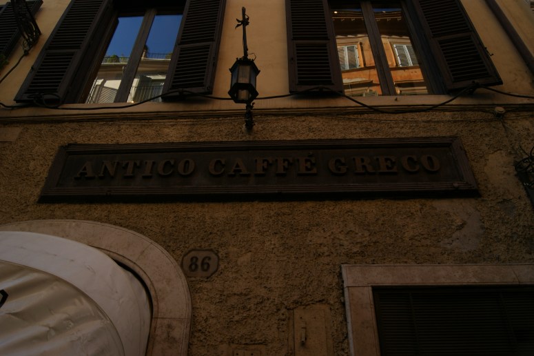 Although my experience of Greco was very brief, and followed a day’s worth of air travel, I knew I was in a very special place the minute I walked through its door. Accompanied by a native Roman on our first late-afternoon stroll down the town centre from Piazza del Popolo towards Fontana di Trevi, looking up and down the posh clothes shop of Via Condotti I couldn’t miss the great sign above the door. Although the whole thing looked as modest as any cafe with no outdoor sitting, somehow it emanated a posh feel. “Coffee?” my companion asked, and I didn’t even have time to express my fear that it would probably be super-expensive, before I was dragged inside.