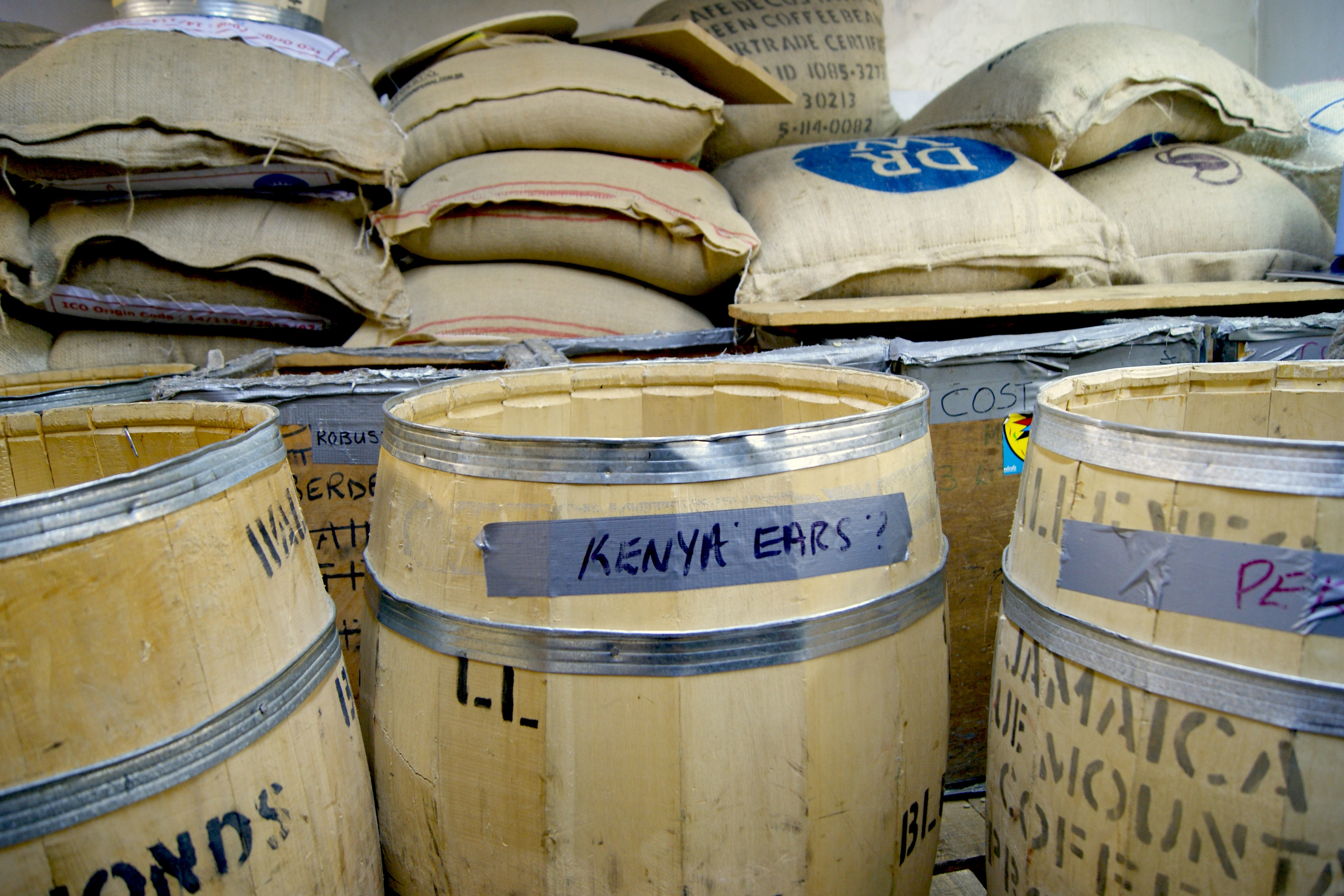 The collection of green coffees Ian has in his cellar is impressive, to say the least. Behind the barrels of single-origin beans from across the world, and those with mixed coffees, ready for roasting as a blend, there are 60kg bags of fresh supply, awaiting their turn to be opened and roasted.