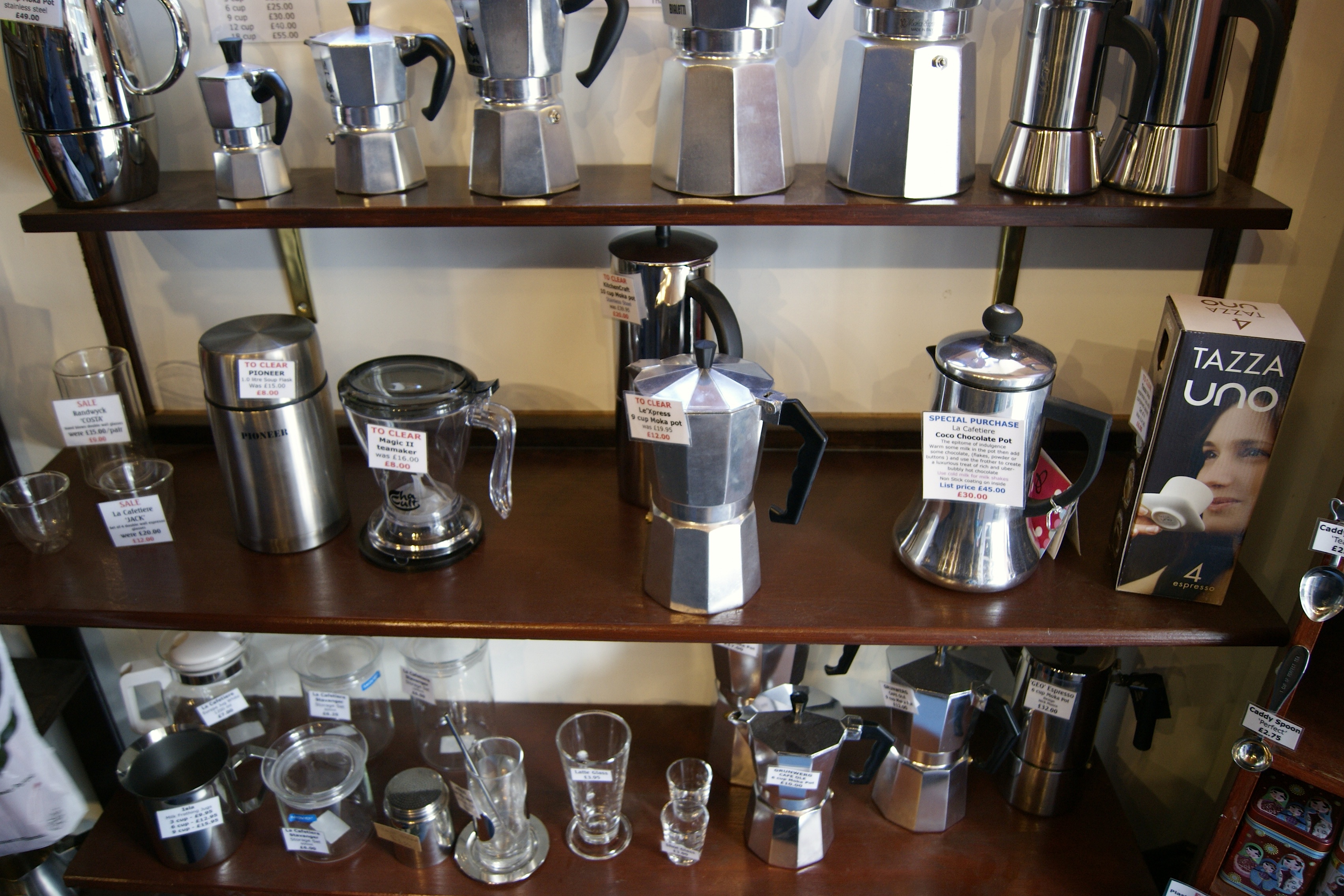 Apart from coffee and tea, the shop also stocks a variety of brewing merchandise and condiments