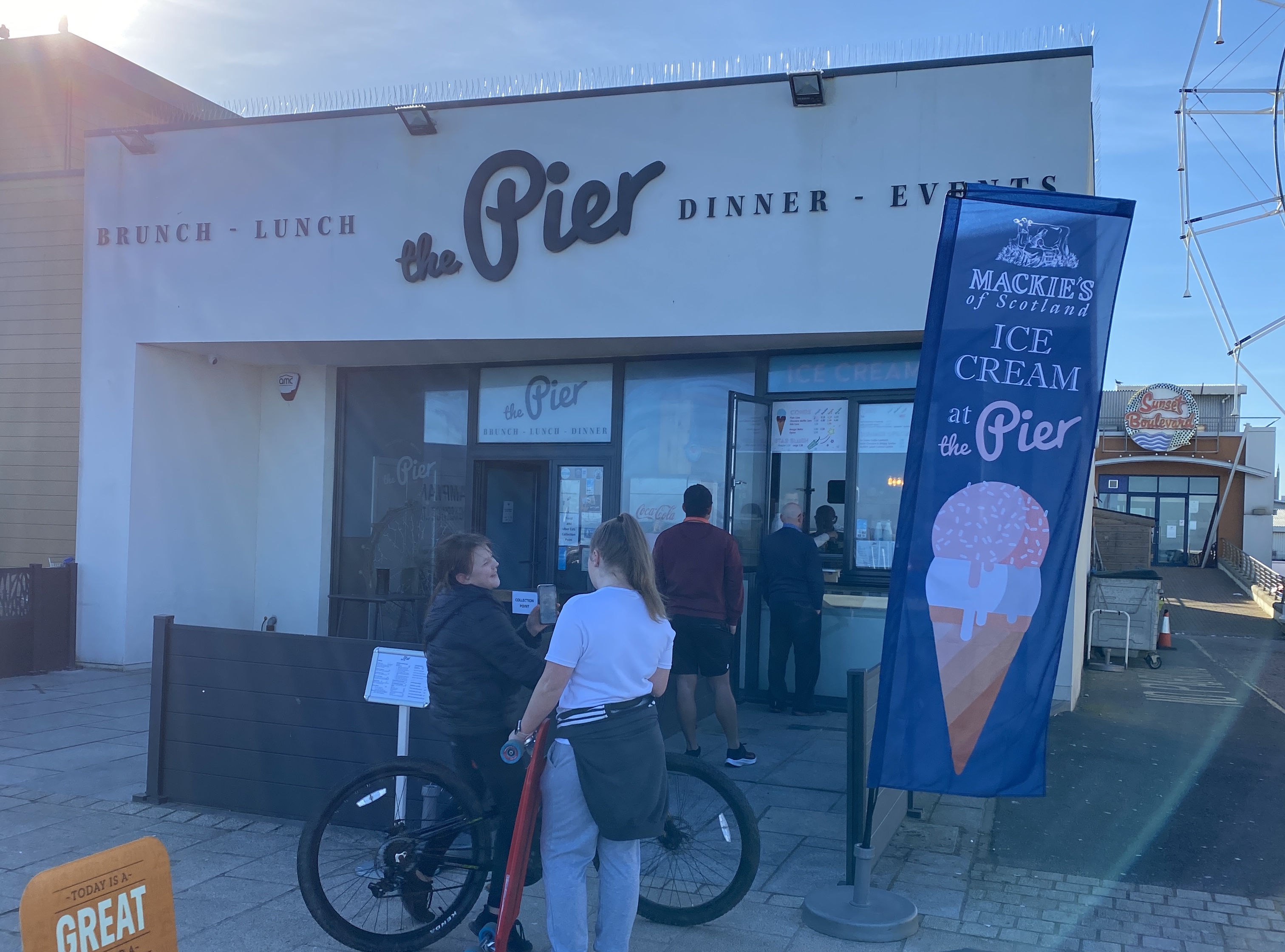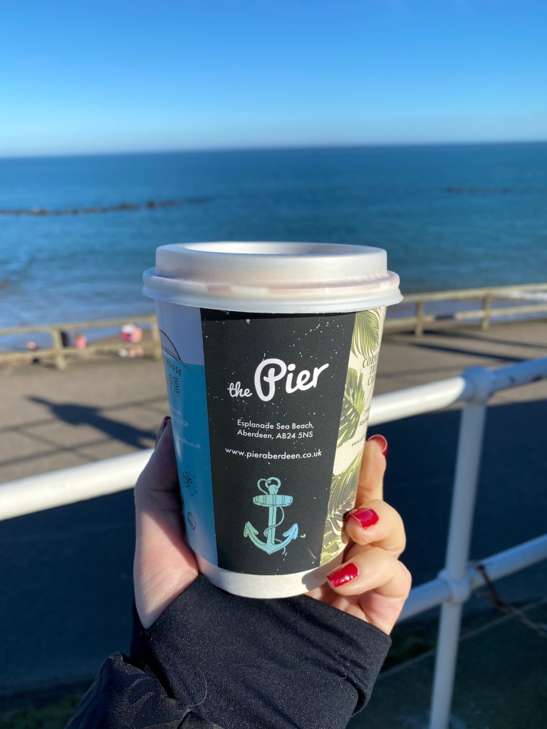Despite the wide choice of cafes, and even though all I wanted was a coffee to warm my hands on, it was obvious that I was not skipping the queue that afternoon: as far as the eye reached all venues had lines leading up to them. Because I emerged from the Retail Park end, I decided to queue at the nearest shop – The Pier.