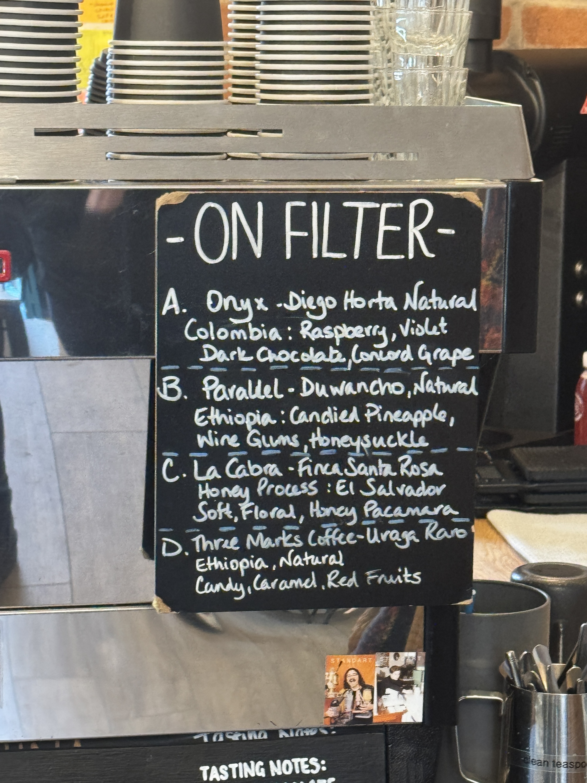 That liquidy part also carried a higher level of acidity, which I suspected was due to the type of beans they used. The boards at the coffee machine, and my second brew that morning: a black Onyx, would confirm that (single origin, quite fruity and floral selection).