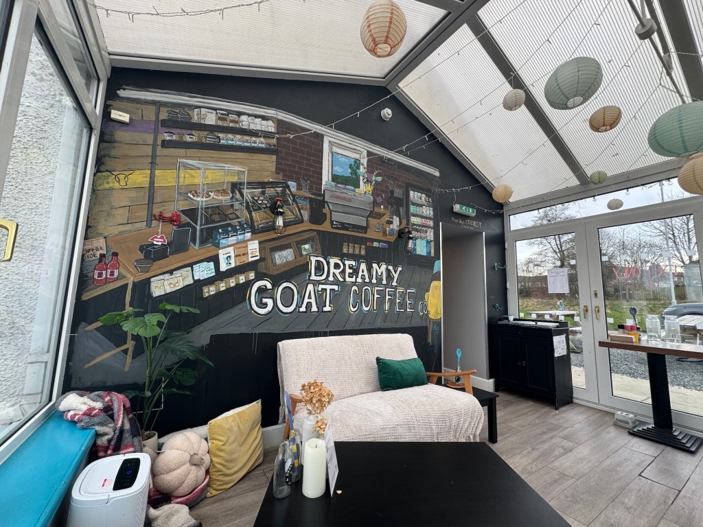 A quick online search suggested a few cafes to visit in the largely walkable town, but I set my sights on a periphery one with an enticing name: the Dreamy Goat Coffee Co. It evoked images of creamy flavours and foamy moustaches – perfect for a rather dreich February day.