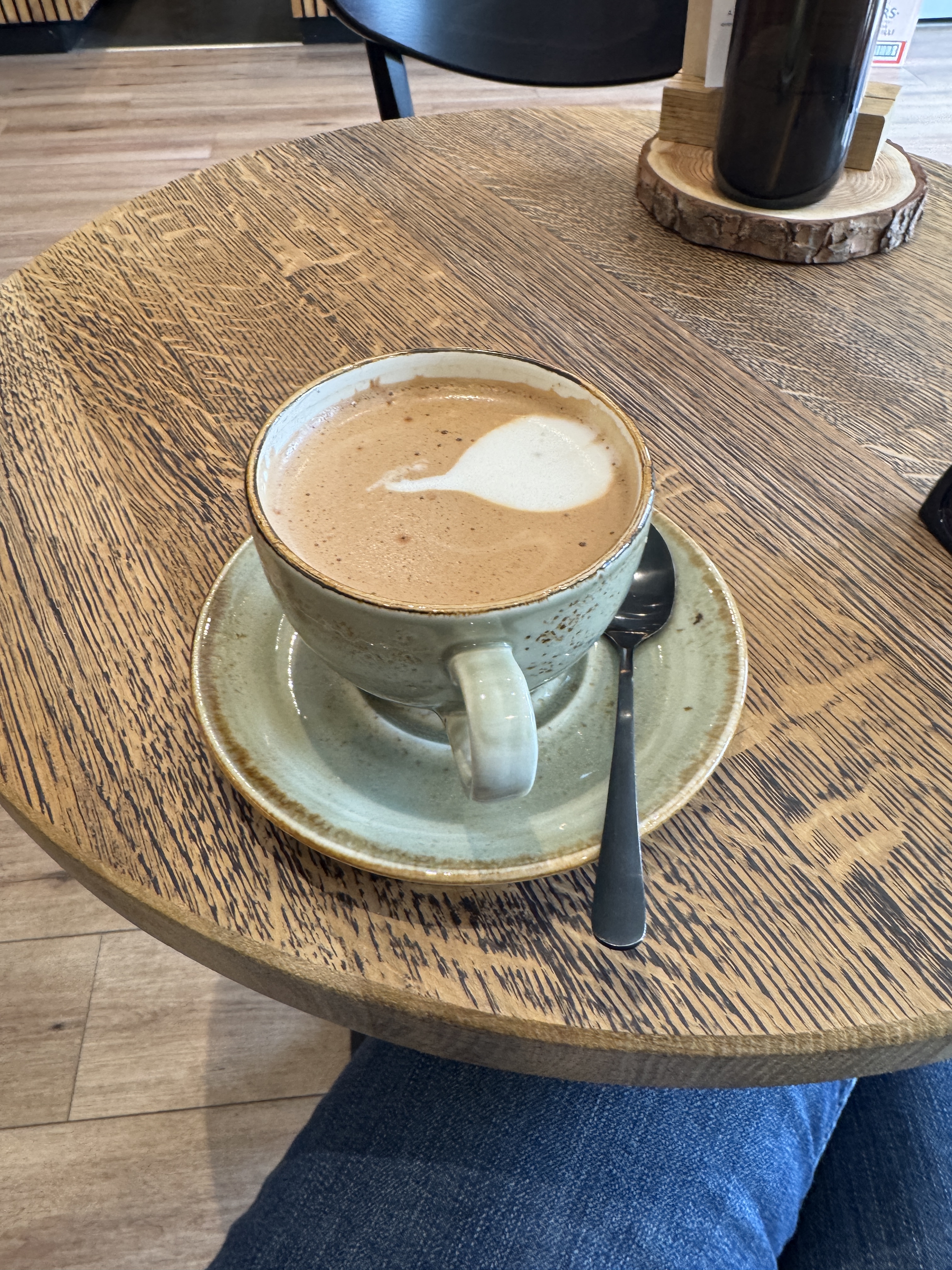 I wasn’t surprised by the lack of latte art on my mocha when it arrived and didn’t hold huge expectations of the substantial drink which visually resembled a hot cocoa. And it was, indeed, pretty sweet – definitely biased towards the chocolate remit of the brew; despite that, it was still a nice drink and of right temperature to blissfully sip away my short time in the venue.
