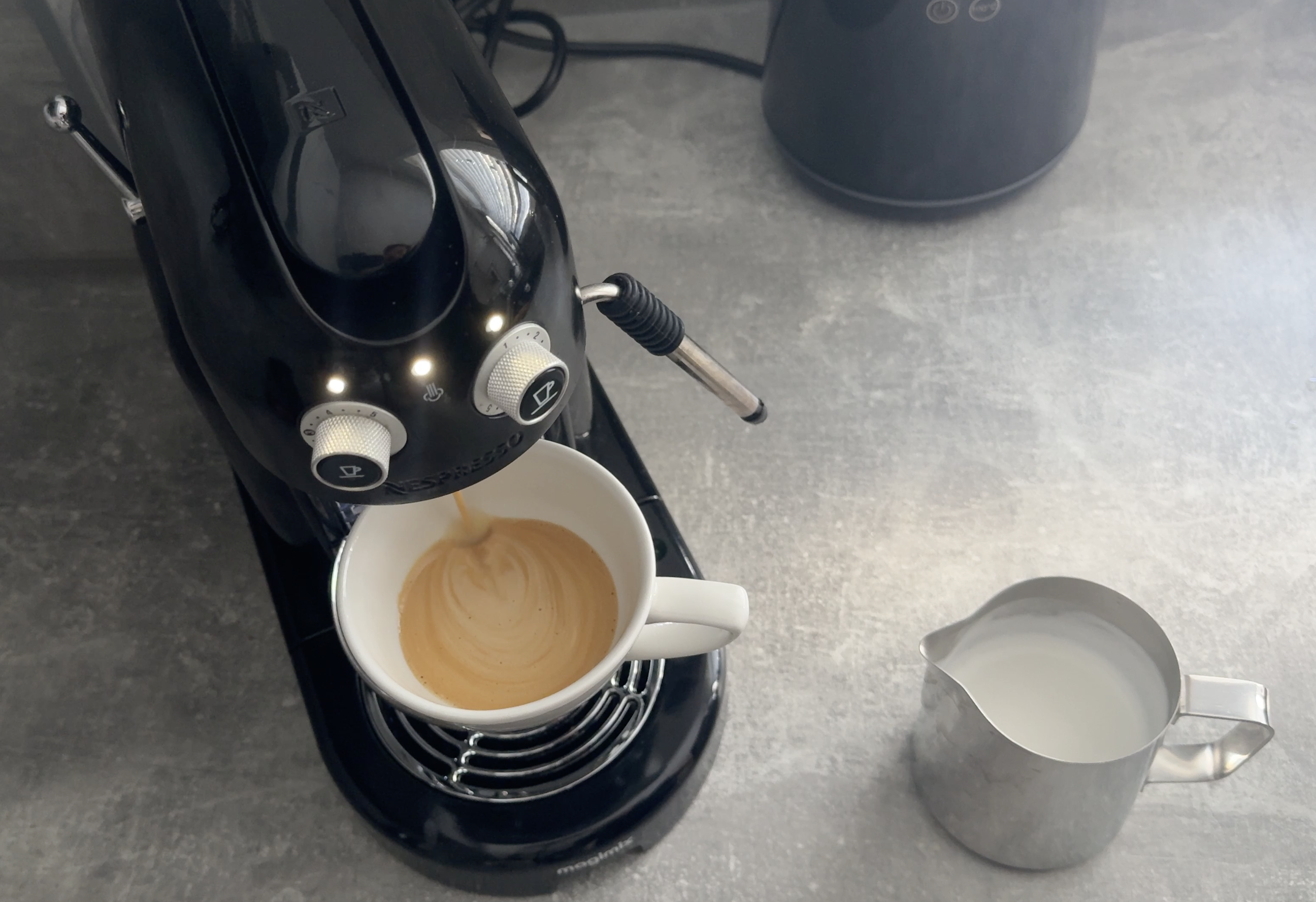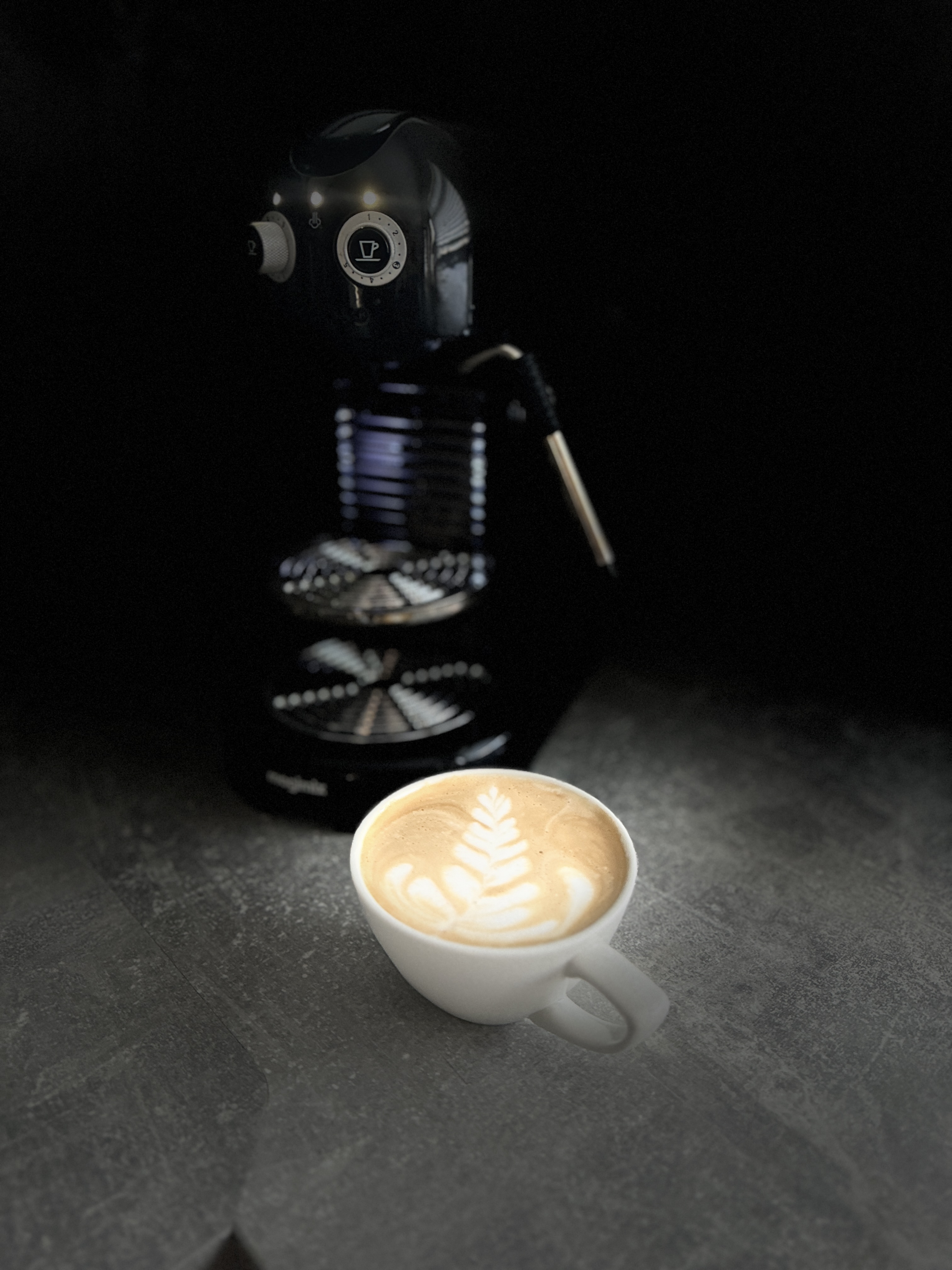 A traditional espresso machine or a domestic bean-to-cup setup will generally give you the best results, particularly with freshly ground beans and a reasonably well dialled-in shot. But good latte art is absolutely possible with pod machines too. I’ve relied on a simple Ristretto from Nespresso for years with consistently good results.